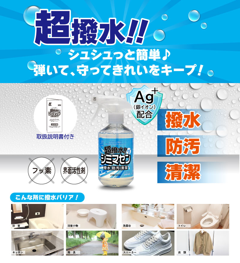3D編み目構造のコーティングにより、あらゆる素材に密着するので家中のアイテムにこれ1本で撥水加工が可能。