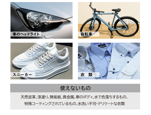 | 用途 | フローリング、ガラス、キッチンまわり、金属、塗装面、陶器、ゴム、布製品、合皮、プラスチック |